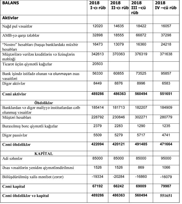 Bankın, ehtimal olunan depozit və kredit itkiləri üzrə ehtiyyatların yaradılması üçün xərci 19 milyon 13 min manatdan 6 milyon 54 min manata düşüb. Bu, Bankda kredit riskinin və problemli kreditlərin azaldığına işarədir.