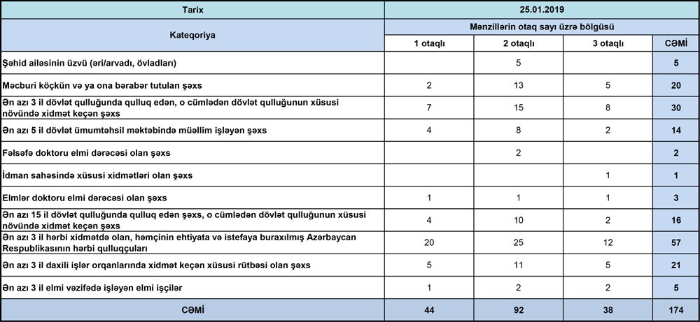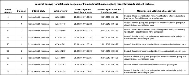 Statistik məlumatlardan məlum olur ki, ən çox mənzil hərbi qulluqçular tərəgindən seçilib.