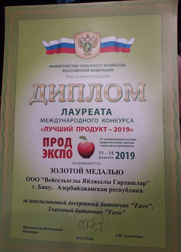 Azərbaycan qənnadı sektoru üçün uğur hesab oluna biləcək xəbər isə Rusiya Federasiyasının paytaxtı Moskvada baş tutan tədbir çərçivəsində keçirilən “Ən yaxşı məhsul – 2019” konkursunda fabrikin yeni istehsalı olan “FAVO” taxıllı batonlarının portağallı desert baton çeşidinin minlərlə rəqibini geridə qoyaraq qalib olması və Qızıl medala layiq görülməsidir.