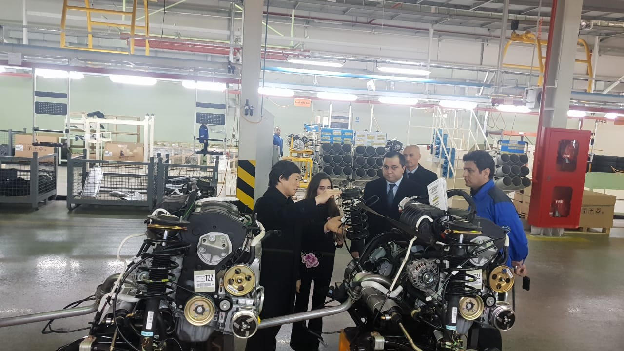 Yaponiyanın Azərbaycandakı fövqəladə və səlahiyyətli səfiri Teruyuki Katori Neftçala Sənaye Məhəlləsində "Khazar" Avtomobil Zavodunda istehsal prosesi ilə tanış olub.