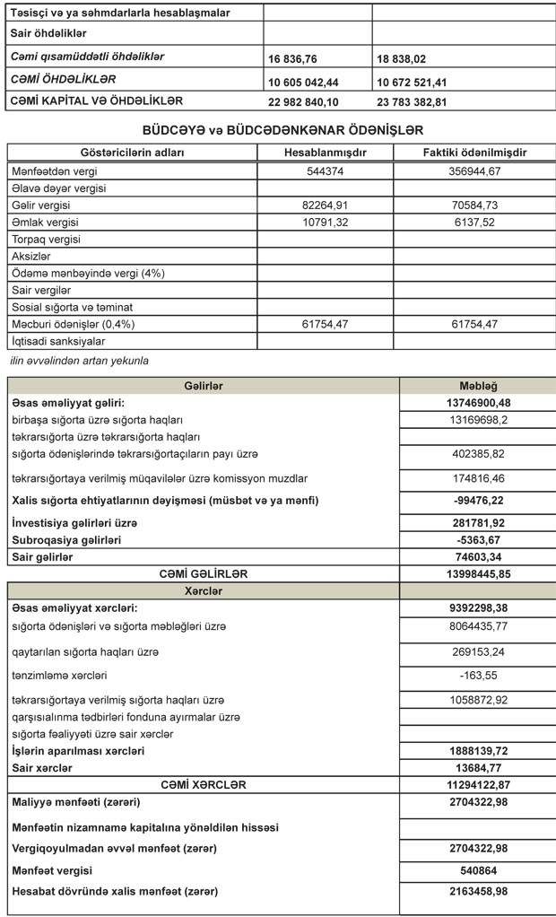 “A-Qroup Sığorta Şirkəti” ASC-nin 2018-ci il yanvarın 1-dən dekabrın 31-dək MALİYYƏ HESABATI