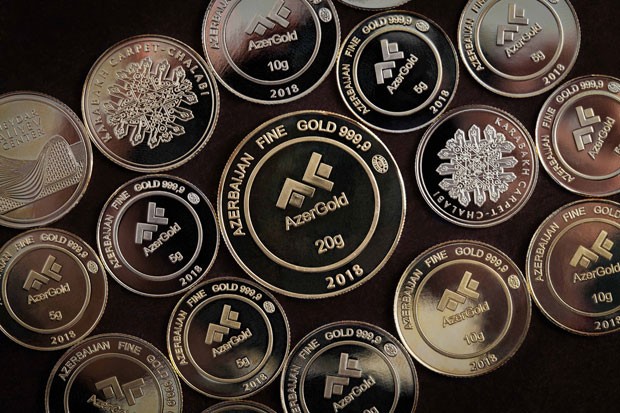 Xəbər verdiyimiz kimi, “AzerGold” QSC Azərbaycan qızılı və gümüşündən istehsal edilən külçə və sikkələri təqdim edib. İlkin mərhələdə sikkələr Heydər Əliyev Mərkəzi, Qobustan qayaüstü rəsmləri və Qarabağ xalçasının naxışı “Çələbi” olmaqla üç müxtəlif dizaynda istehsal edilib.