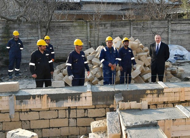 Sonra dövlətimizin başçısı Firdovsi küçəsinində Həcər Zamanovanın ailəsi üçün inşa edilən yeni evdə görülən işlərlə tanış oldu. Məlumat verildi ki, dağılmış evin yerində tikilən yeni ev 3 otaqdan ibarət olacaq. Burada normal yaşayış üçün hərtərəfli şərait yaradılacaq.