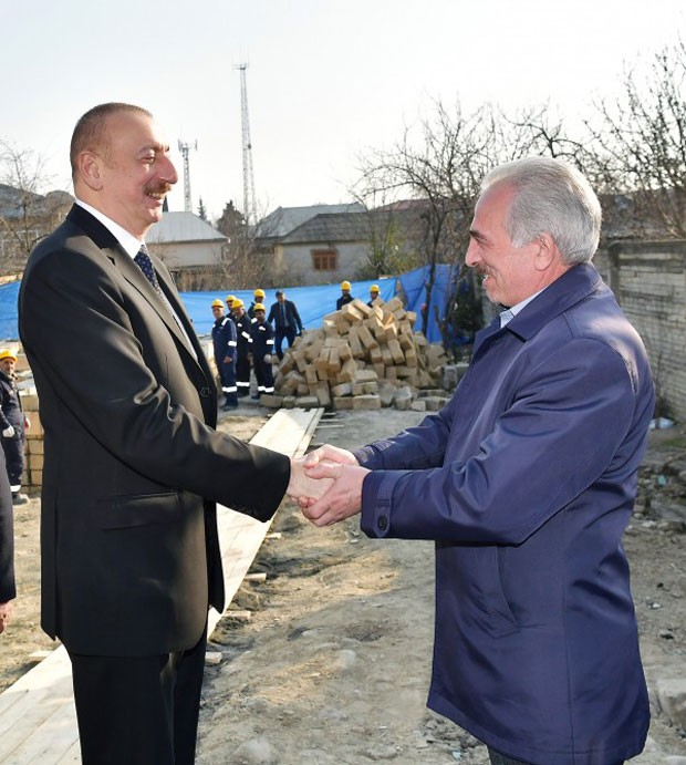 Dövlətimizin başçısı zəlzələ nəticəsində zərər çəkən evlərin yerində yenidən tikilməkdə olan evlərlə tanış olub. Prezident İlham Əliyev Xasayev küçəsinin sakini Gülarə Hökmrəvanın ailəsi üçün tikilməkdə olan yeni evə baxdı, ev sahibinin oğlu Tahir Hökmrəvanla söhbət edib.