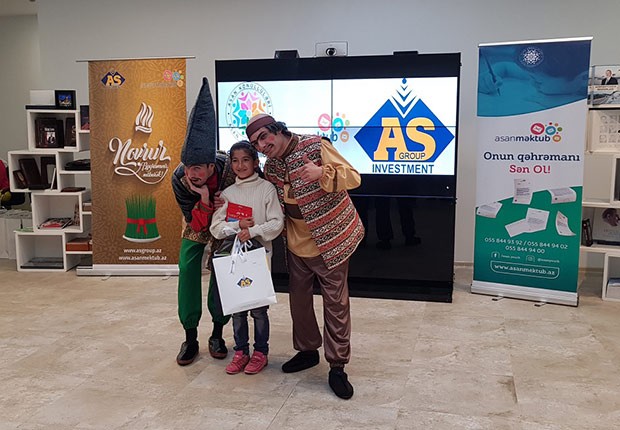 ASAN Könüllüləri və şirkət əməkdaşları torpaq çərşənbəsi günü – 19 mart tarixində Masallı “ASAN Həyat” kompleksində 11 məktəbdən olan şagirdləri bir araya topladı və birlikdə bayram şənliyi keçirdilər. Masallı rayonunun Alvadı, Qızılavar, Sığdaş, Bədəlan, Türkoba, Hişkədərə, Mahmudavar, Musaküçə, Alışanlı, Ətçələr və Cəlilabad rayonunun Göytəpə kəndindən olan və www.asanmektub.az saytına məktub ünvanlamış 80 məktəblinin arzusu reallaşıb. Onlardan 40 nəfərinin istəyi “AS Qrup İnvestment” tərəfindən qarşılanıb. Uşaqlara öz istəklərinə uyğun olaraq geyimlər, məktəb ləvazimatları hədiyyə olunub.