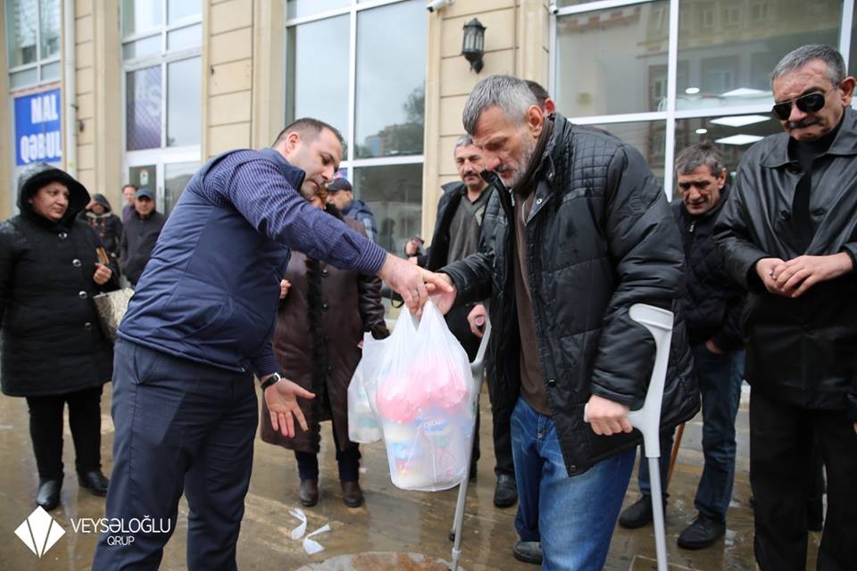 Belə ki, “Veysəloğlu” Qrupa daxil olan “Veysəloğlu” MMC, Ulduz şokolad fabriki, Araz Supermarketlər şəbəkəsi, həmçinin OBA marketlər şəbəkəsi Qızıl Aypara Cəmiyyəti, “Müharibə, Əmək və Silahlı Qüvvələr” İctimai Birliyinin Nizami rayonu, “Əlil və Veteranlar” İctimai Birliyinin Abşeron rayonu, “Qarabağ Müharibəsi Əlilləri, Veteranları və Şəhid Ailələri” İctimai Birliyinin Nizami və Yasamal rayonu bölmələri, “Bakı Müharibə Əlil və Veteranlar” İctimai Birliyinin üzvləri, Binəqədi və Nizami Rayonu İcra Hakimiyyətinin qeydiyyatında olan bir qrup veteranlara, şəhid və aztəminatlı ailələrə müxtəlif ərzaq məhsullarından ibarət bayram sovqatı təqdim edib.