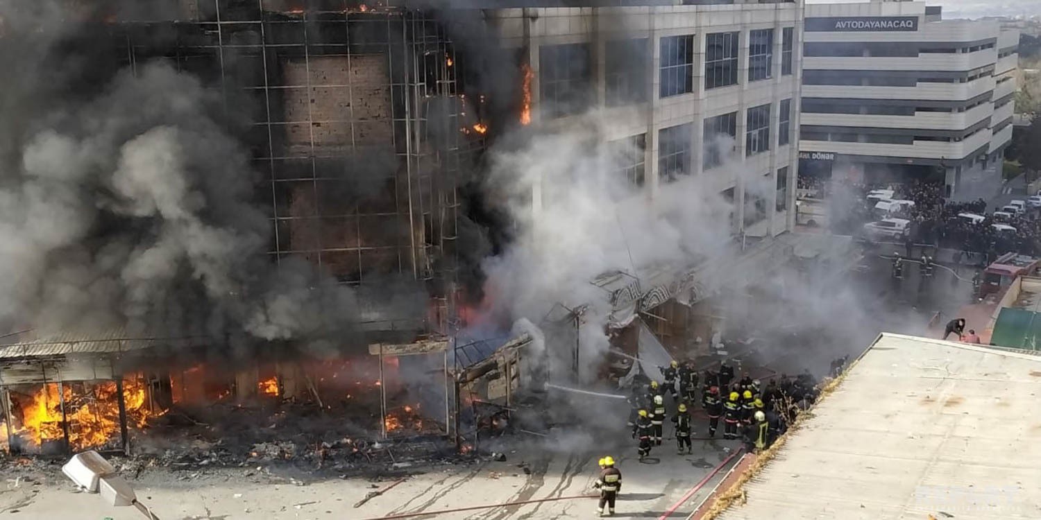 Yanğın nəticəsində ticarət mərkəzinin binası tam yararsız hala düşüb.