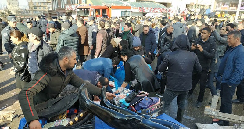 Məlumata görə, ticarət mərkəzi yararsız hala düşüb.