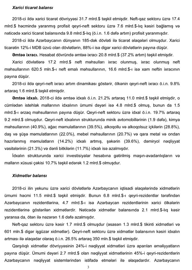 Qeyd edək ki, tədiyə balansı hesablamalarında xam neftin faktiki orta qiyməti 69,6 dollar (2017-ci ildə 52,4 dollar) olub.