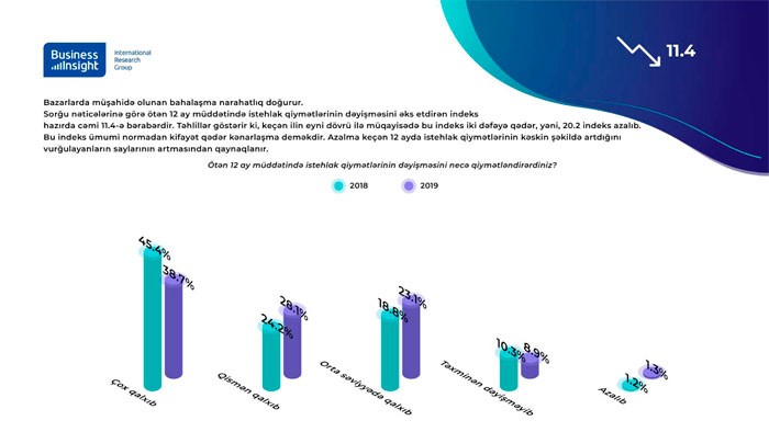 Təhlillər göstərir ki, keçən ilin eyni dövrü ilə müqayisədə bu indeks iki dəfəyə qədər, yəni, 20.2 indeks azalıb. Bu indeks ümumi normadan kifayət qədər kənarlaşma deməkdir. Azalma keçən 12 ayda istehlak qiymətlərinin kəskin şəkildə artdığını vurğulayanların saylarının artmasından qaynaqlanır.