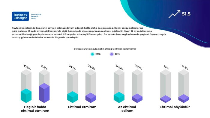 Yaxın 12 ay müddətində avtomobil almağı planlaşdıranların indeksi 11.2-ə qədər artaraq 51.5 olmuşdur.
