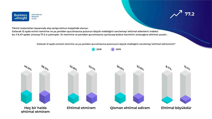 Gələcək 12 ayda evinin təmirinə və ya yenidən qurulmasına pulunun böyük məbləğini xərcləməyi ehtimal edənlərin indeksi bu il 6.47 qədər artaraq 77.2-ə çatmışdır.