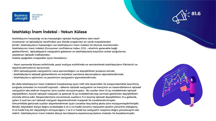Aparılmış tətqiqat nəticəsində ölkə üzrə inam indeksinin cari göstəricisi 81.6 müəyyən edilmişdir ki, bu da qayadalara əsasən aşağı göstərici hesab olunur. Təhlillər göstərir ki, ölkə üzrə inam indeksi keçən ilin eyni dövri ilə müqayisədə 5.6 bal azalmışdır.