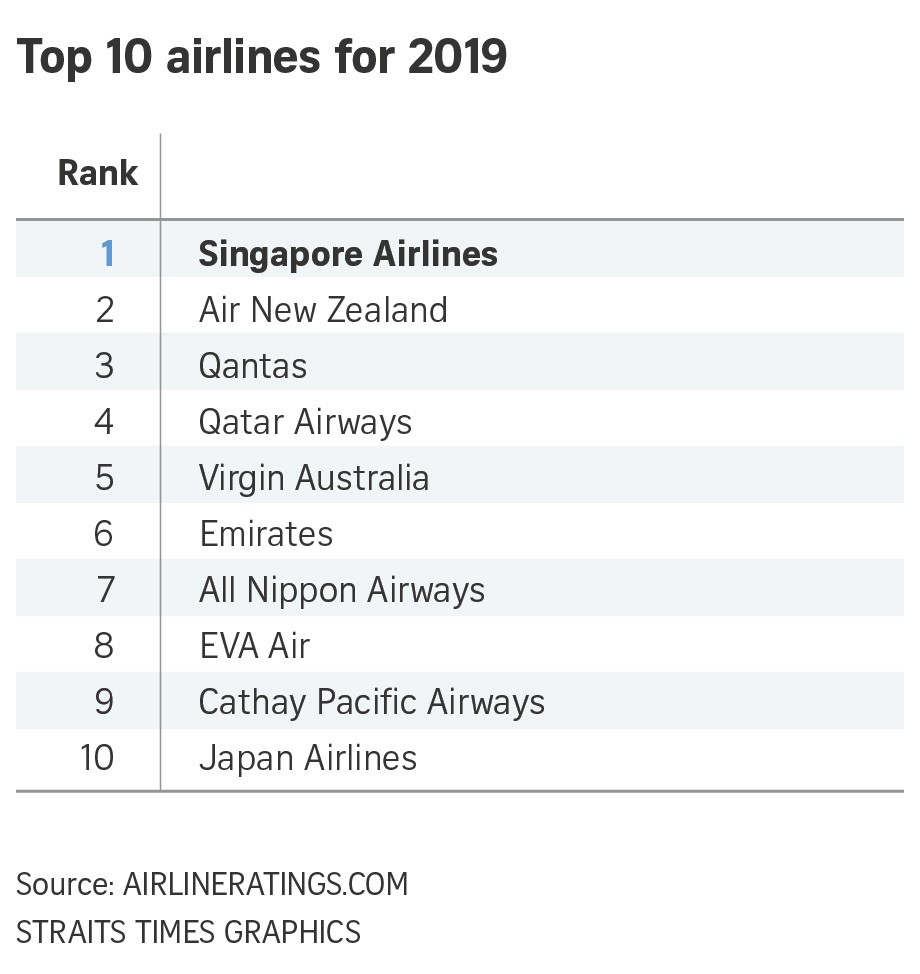 Sinqapurun "Singapore Airlines" aviaşirkəti dünyanın ən yaxşı aviaşirkətlər reytinqinə başçılıq edir.