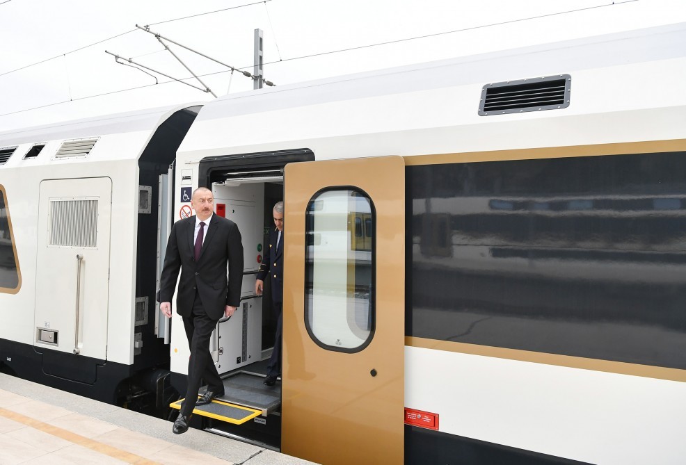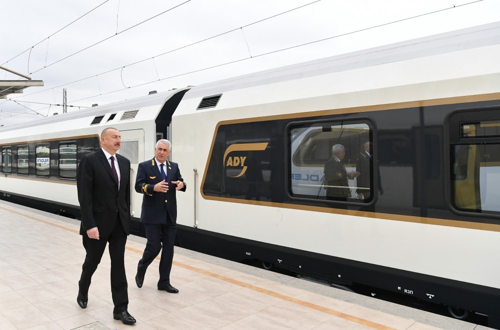 Prezident Bakı-Tbilisi-Qars yolunda hərəkət edəcək sərnişin qatarı ilə tanış oldu - FOTOLAR