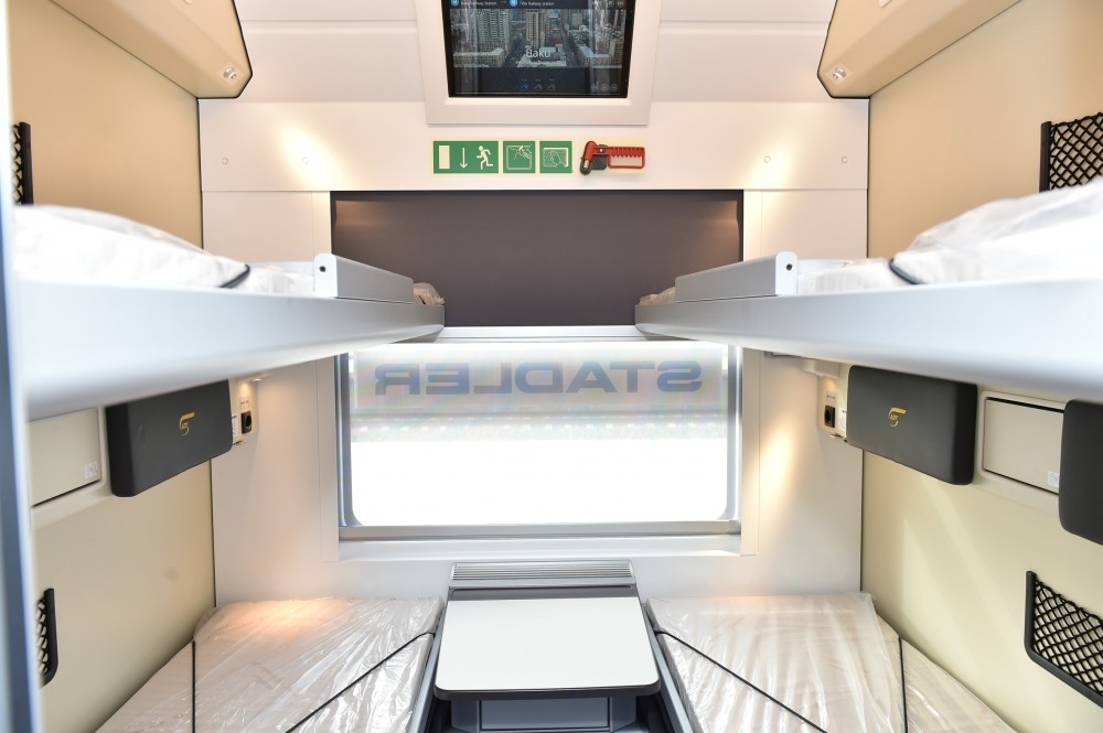 “Azərbaycan Dəmir Yolları” Qapalı Səhmdar Cəmiyyətinin sədri Cavid Qurbanov bildirdi ki, “Azərbaycan Dəmir Yolları” QSC-nin sifarişi ilə İsveçrənin “Stadler Rail Group” şirkəti tərəfindən istehsal olunan 10 vaqondan ibarət sərnişin qatarı Türkiyə və Gürcüstandan keçməklə martın 29-da Bakıya çatıb. Amma bundan əvvəl qatar Axalkalakidə quraşdırılmış xüsusi qurğuda test rejimində sınaqdan keçirilib. Qatarların Türkiyədə hərəkəti üçün Gürcüstan-Türkiyə-Gürcüstan sərhəd-keçid məntəqəsində vaqonda təkər cütlərinin eninə bazasının avtomatik olaraq 1520 millimetrdən 1435 millimetrə və əksinə dəyişdirilməsini nəzərdə tutan yeni qurğu quraşdırılıb. Qatarda doqquz sərnişin vaqonu və bir restoran var. Vaqonlar “standart”, “komfort”, “biznes” və “restoran” olmaqla dörd kateqoriyada istehsal edilib. Kateqoriyasından asılı olaraq, vaqonlar 10, 20 və 32 nəfərlikdir. Ümumilikdə qatarda bir istiqamətə 246 yer nəzərdə tutulub. Saatda 160 kilometr sürətlə hərəkət etmək imkanına malik qatardakı arabacıqlar pnevmatik asılqanla təmin edilib ki, bu da döngələrdə vaqonun tarazlığını tənzimləyir. Bundan başqa, hər bir vaqon dizel generatoru avadanlığı ilə təmin olunub. Bu da lokomotivdə cərəyan olmadıqda vaqonu və ondakı bütün elektrik enerjisi istifadəçilərini 24 saat fasiləsiz elektrik enerjisi ilə təmin edəcək.