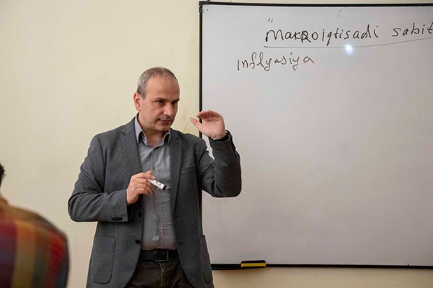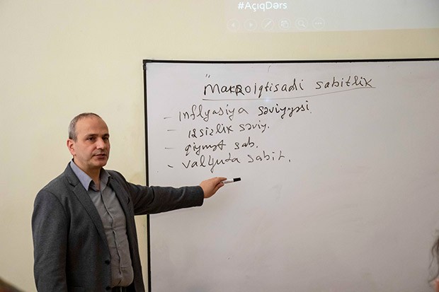 Samir Əliyev ölkənin əsas makroiqtisadi göstəricilərinə toxunub və onların son illər ərzində dinamikasını tələbələrlə birgə təhlil edib. Bununla yanaşı, iqtisadçı və layihə iştirakçıları dövlət büdcəsinin əsas komponentlərinin analizini aparıblar.