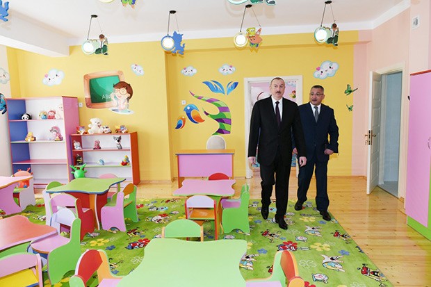 Sonra Prezident İlham Əliyev uşaq bağçasında yaradılan şəraitlə tanış oldu. Burada balacaların təlim-tərbiyəsi üçün bütün imkanlar var. 280 yerlik bağça uşaqların zövqünə uyğun qurulub, onların rahatlığını, istirahətini və ilkin biliklərə yiyələnməsini təmin edəcək. Otaqlar və dəhlizlər uşaqların sevimli nağıl qəhrəmanlarının şəkilləri ilə bəzədilib. Bağçanın yerləşdiyi ərazidə geniş abadlıq-quruculuq işləri görülüb, yaşıllıq zolağı salınıb.