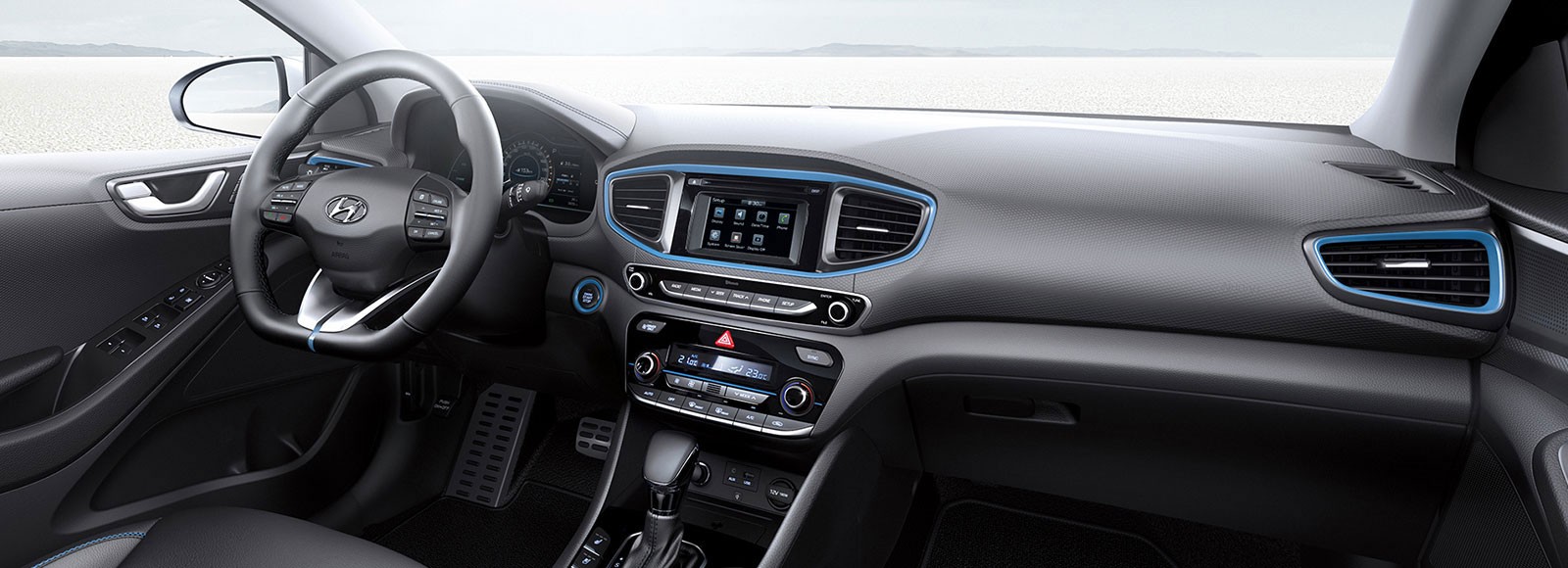 İnteryerin dizaynı avtomobili öz seqmentində ən yüksək pilləyə qaldırır və erqonomik elementlər bu seqment üçün xarakterik olmayan rahatlıq və praktiklik təmin edir. Bir çox avtomobillərdə sonradan qoyulmuş kimi görsənən və interyer dizaynı ilə heç də səsləşməyən monitorlardan fərqli olaraq İONİQ Hybrid modelində 8”-luq monitor dizaynı tamalayır, ümumi interyerin doğma parçası kimi görsənir.