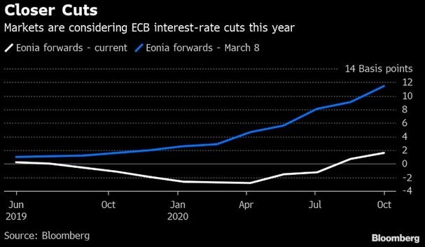 Bundan əvvəl, treyderlər 2019-cu ildə AMB-nin faizləri sabit saxlayacağını, 2020-ci ildə isə 10 bənd artıracağını gözləyirdilər.