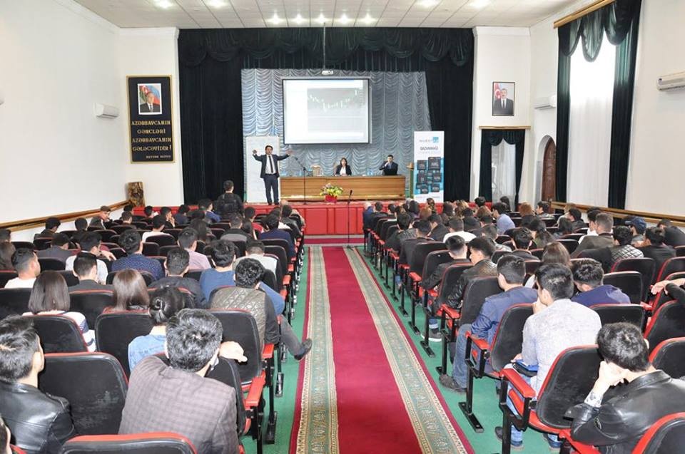 Mingəçevir Dövlət Universitetində Azərbaycan Fond Bazarı İştirakçılarının Assosiasiyası” İctimai Birliyi (AFBİA), “İnvestAZ İnvestisiya Şirkəti” QSC və Mingəçevir Dövlət Universitetinin birgə təşkil etdiyi “Maliyyə bazarlarında praktik fəaliyyət” mövzusunda seminar keçirilib.
