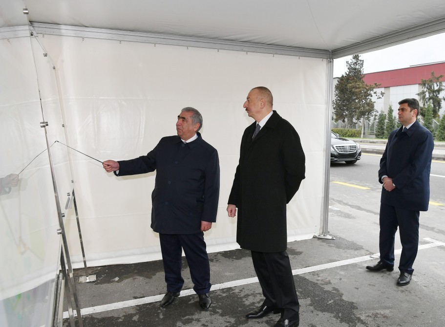 Dövlətimizin başçısı yolun rəmzi açılışını bildirən lenti kəsib.