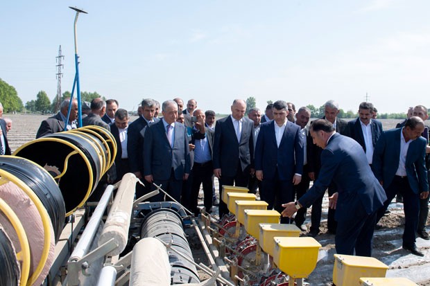 “Azərbaycan Respublikasının Prezidenti İlham Əliyev torpaq və su resurslarından səmərəli istifadə etmək və məhsuldarlığı maksimum yüksək səviyyəyə qaldırmaqla bağlı çox mühüm tapşırıq verib. Bu innovativ texnologiya da fermerin daha az əziyyət çəkməsinə, alaq otlarına qarşı mübarizə tədbirləri və suvarma üçün daha az vəsait xərcləməsinə səbəb olur. Çin texnologiyasından istifadə nəticəsində istehsalat xərcləri azalır, məhsuldarlıq artır. Siz fermerlər bu gün qazandığınız təcrübənin carçısı olmalısınız. Biz Beyləqanda və Tərtərdə türk və yunan mütəxəssislərinin iştirakı ilə model təsərrüfatlar yaradırıq. Azərbaycanda pambıqçılığın ənənələri zəngindir. Artıq dünyada kənd təsərrüfatının inkişafı təcrübə mübadiləsi üzərində qurulub. Biz dünya təcrübəsini öyrənməli, öz yaxşı təcrübəmizlə birləşdirməli və təcrübəmizi digər dövlətlərlə bölüşməliyik”.