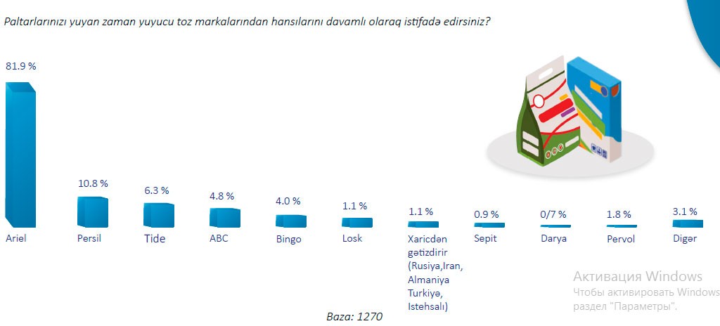 "Müqayisəli təhlillər də göstərir ki, bazarda məhz ən yaxşı yuyucu vasitə mövqeyindən uzun illərdir "Ariel" çıxış edir",- sorğunun nəticələrinə həsr olunmuş hesabatda deyilir.