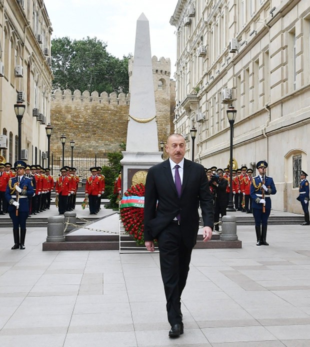 Dövlətimizin başçısı abidənin önünə əklil qoydu.