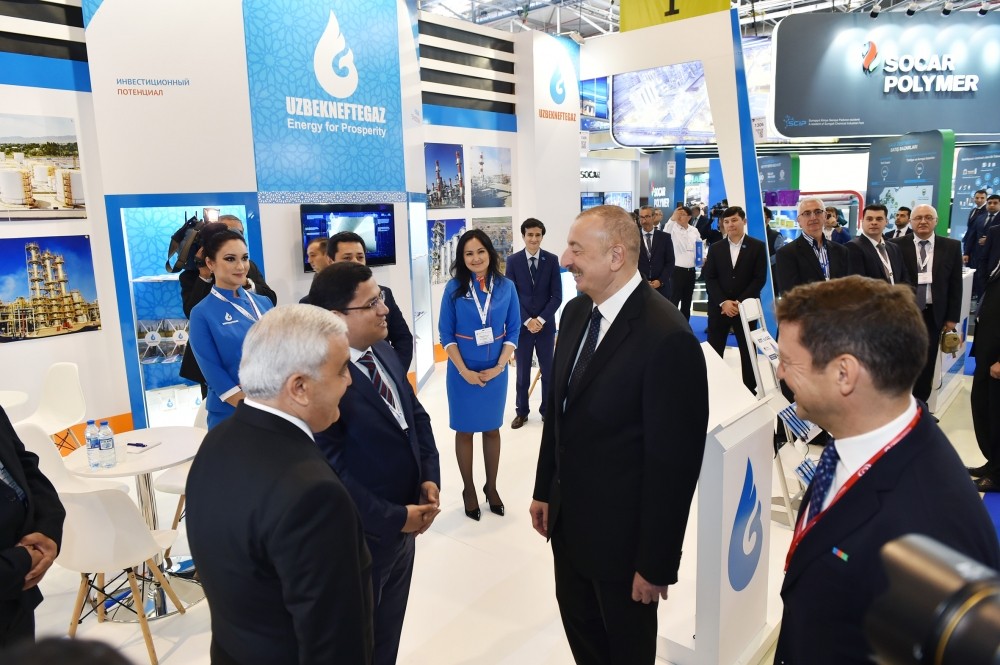 Prezident İlham Əliyev BP-Azərbaycanın stendində də oldu. Dövlətimizin başçısına burada AÇG-nin 25 illiyi ilə bağlı uğurlar və növbəti 25 illik plan barədə məlumat verildi. BP-Azərbaycan ölkənin və Cənubi Xəzər regionunun aparıcı əməliyyatçısı kimi fəaliyyət göstərir. Bu müddətdə BP təhlükəsiz və səmərəli əməliyyatlar həyata keçirərək ölkənin bir sıra mühüm neft-qaz layihələrini uğurla təhvil verib. Bu layihələrə “Azəri-Çıraq-Dərinsulu Günəşli” neft yatağı, “Şahdəniz” qaz və kondensat yatağı, üç ixrac boru kəməri, həmçinin dayazsulu “Abşeron” və “Şəfəq-Asiman” və D-230 geoloji-kəşfiyyat strukturları daxildir. İndiyədək BP tərəfdaşları ilə birgə Azərbaycanın neft-qaz layihələrinə 72 milyard dollardan artıq sərmayə qoyub. BP-nin Azərbaycanda 2900-a yaxın ixtisaslı işçisi var. Onların 90 faizi Azərbaycan vətəndaşlarıdır.