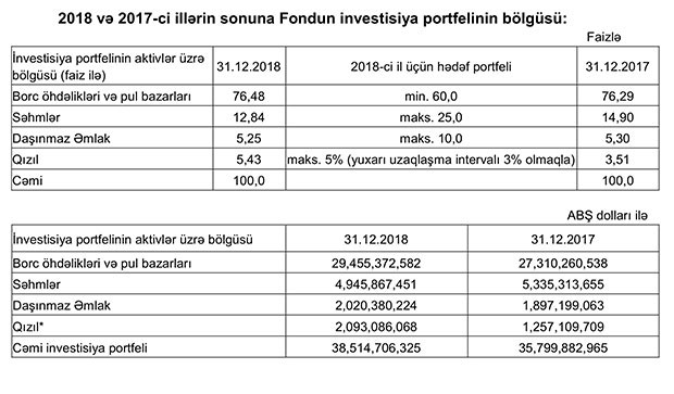 2018 və 2017-ci illərin sonuna Fondun investisiya portfelinin bölgüsü dərc olunub.