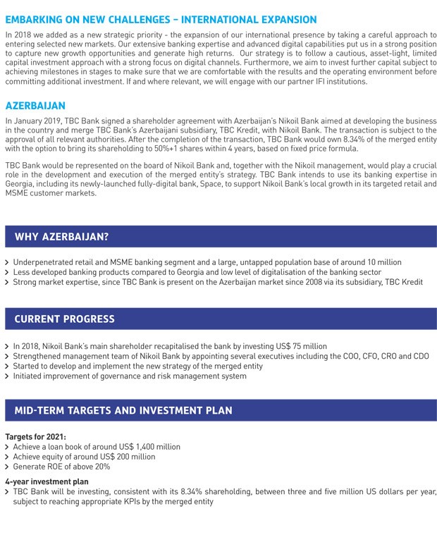 4 illik kapital qoyuluşu planına görə, "TBC Bank" hər il “Nikoyl Bank”a 3-5 milyon ABŞ dolları arasında sərmayə qoyacaq.