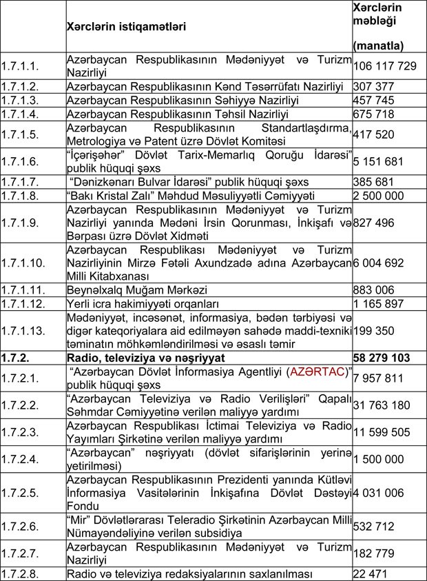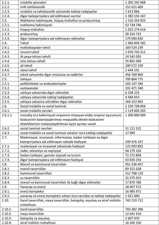 "Marja" xəbər verir ki, qanunda Azərbaycan Respublikasının 2018-ci il dövlət büdcəsinin icrası gəlirlər 22 milyard 508 milyon 869,7 min manat, xərclər 22 milyard 731 milyon 644,5 min manat məbləğində olmaqla təsdiq edilib.