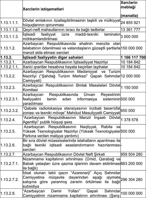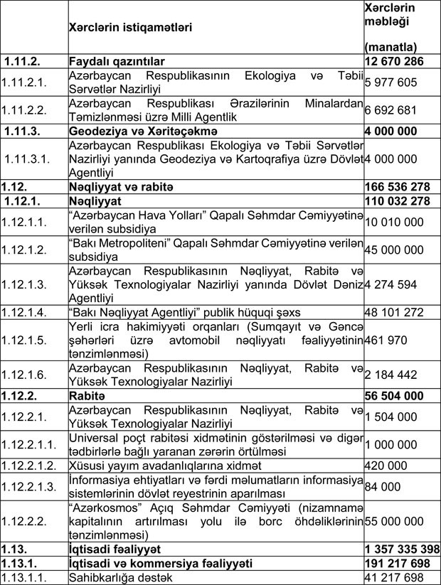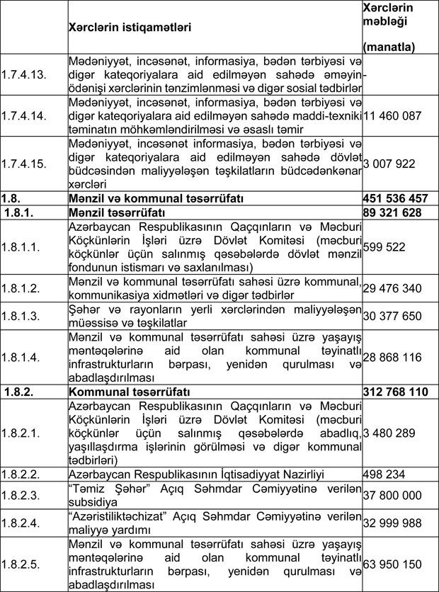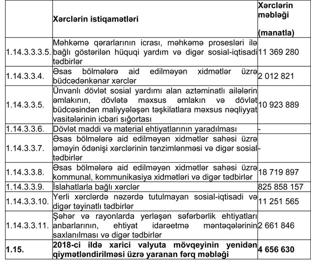 Azərbaycan Respublikasının 2018-ci il dövlət büdcəsinin gəlirlər və xərclər üzrə göstəriciləri aşağıdakı kimi qəbul edilib: