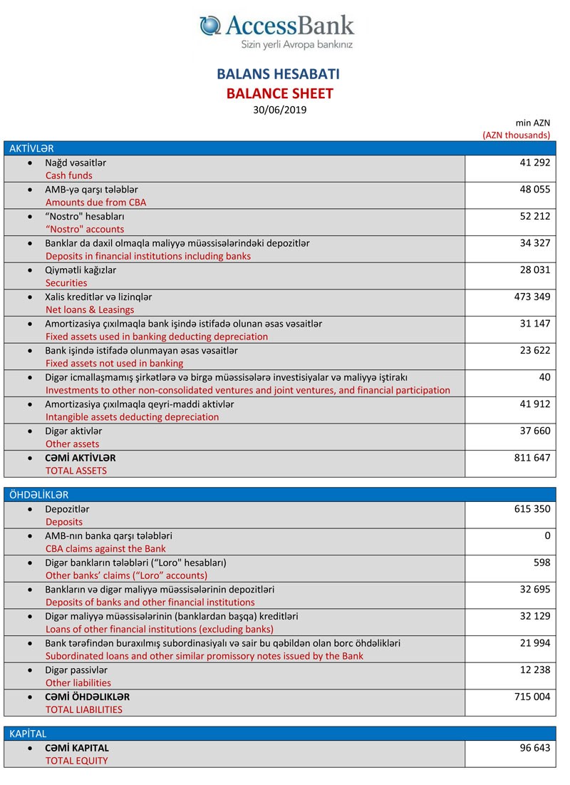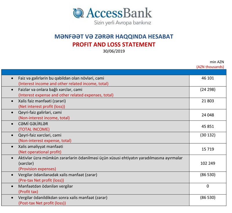 “AccessBank” 2019-cu ilin birinci yarısına dair maliyyə hesabatını açıqlayıb.