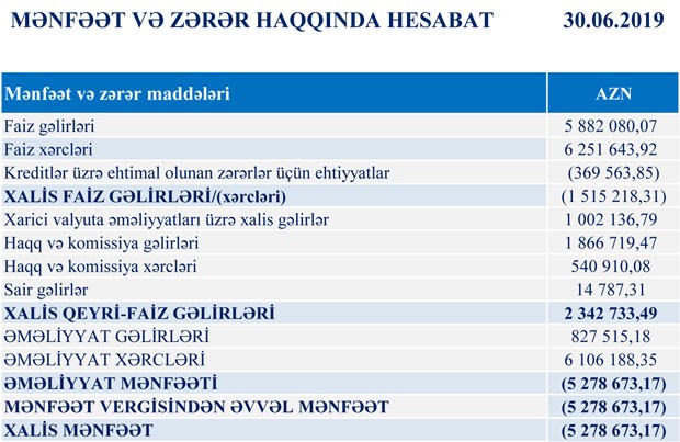 Bankın aktivləridə 2018-ci ilin II rübü ilə müqayisədə 5 mln. AZN artmışdır.