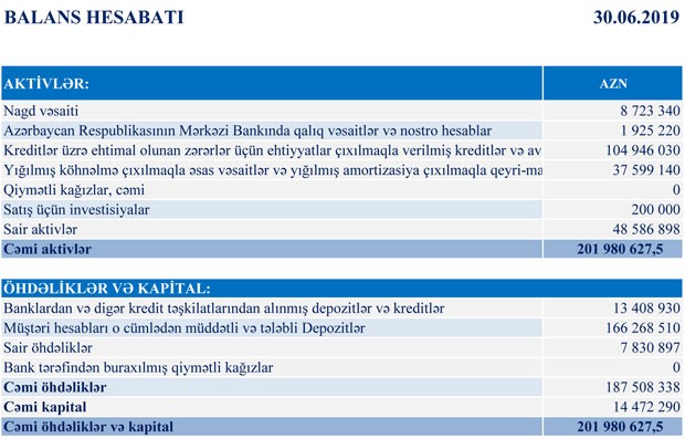 “Amrahbank” 2019-cu ilin 1-ci yarısı (yanvar-iyun) üzrə maliyyə göstəricilərini açıqlayıb.