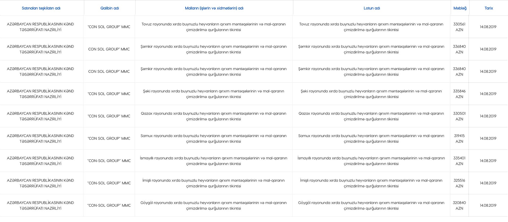 Bu işlərin icrası məqsədilə nazirlik “CON-SOL Group” MMC ilə 4 milyon 276 min manat ümumi məbləğində 13 müqavilə imzalayıb.