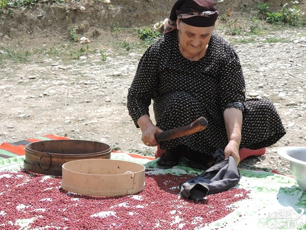 “Bir insan ağaclardan gün ərzində 20 kiloqramadək sumaq yığa bilər ki, bundan da cəmi 3-4 kiloqram təmiz ədviyyat alınır. Bitki yığıldıqdan sonra bir müddət qurudulur. Həmin xammal döyülür və meyvələr zoğdan ayrılır. Meyvələr ikinci dəfə tam quruyanadək saxlanıldıqdan sonra yenidən emal olunur. Bunun üçün meyvələr xüsusi torbalara doldurularaq toxumlarından ayrılanadək əzilir. Əldə edilən məhsul ələkdən keçirildikdən sonra hazır vəziyyətə gəlir”, - deyə M. Salahova söyləyir.