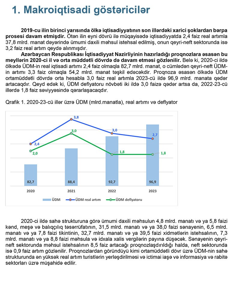 2020-ci ilin büdcəsi üzrə ilkin rəqəmlər məlum oldu
