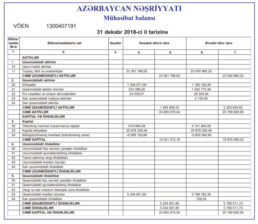 Ötən il “Azərbaycan” nəşriyyatının cəmi kapitalı zərər qədər azalaraq 19 milyon 521 min manata düşüb.