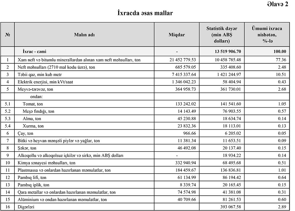 Azərbaycanın ən çox ixrac və idxal etdiyi mallar