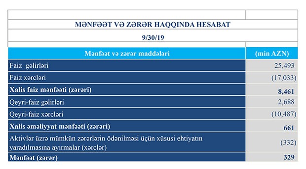 Müqayisə üçün qeyd edək ki, ötən ilin 9 ayı ərzində “Turanbank”ın cəmi gəlirləri 25 milyon 287 min manat, cəmi xərcləri 24 milyon 590 min manat, əməliyyat mənfəəti 697 min manat təşkil etmişdi. Bank həmin dövrdə əməliyyat mənfəətinin 633 min manatını aktivlər üzrə mümkün zərərlərin ödənilməsi üçün xüsusi ehtiyatın yaradılmasına ayırmışdı.