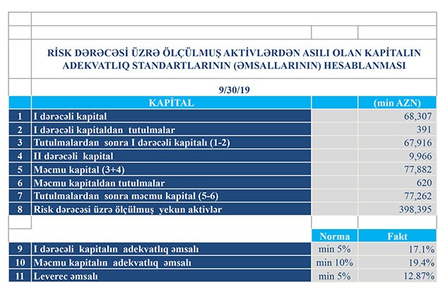 30 Sentyabr 2019-cu il tarixində “Turanbank” 77 milyon 262 min manat məcmu kapitala malik olub.