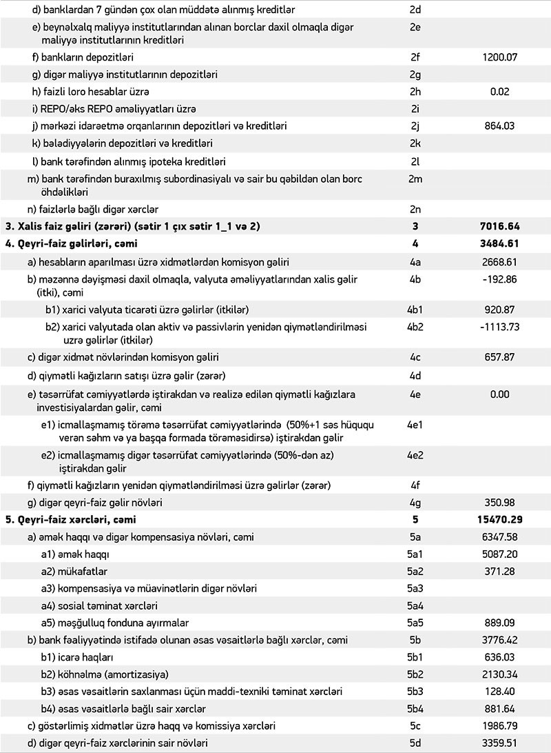 Bank ötən ilin 9 ayının yekunları üzrə 86 min manat xalis mənfəət açıqlamışdı. Aktivlər üzrə mümkün zərərlərin ödənilməsi üçün yaradılmış ehtiyatın 1 milyon 631 min manatının azad olması həm bankın əməliyyat zərərini bağlamış, həm də 86 min manat xalis mənfəəti təmin etmişdi.