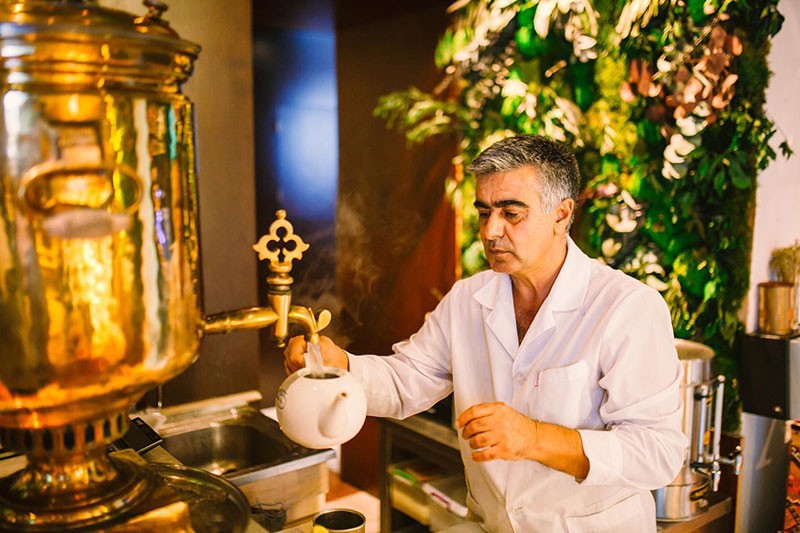 -Siz çox vacib sual verdiniz. Bizdə ən və ən mühüm olan çayın özüdür. Belə dadlı və ətirli çay heç yerdə yoxdur. Bizdə bu – qaynadılmış bulaq suyu, daha sonra isə əsil samovarlarda dəmlənən çaydır. Biz turistlərə əsil çayın nə olduğunu nümayiş etdirmək istəyirik. Bununla yanaşı, bizdə çoxillik təcrübəyə malik olan, çaya dərindən bələd olan çayçılar çalışır. Onlar öz işlərinin əsil sənətkarıdır.
