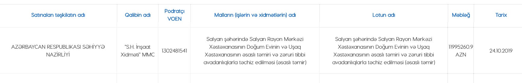 Oktyabrın 24-də Səhiyyə Nazirliyi "S.H. İnşaat Xidməti" MMC ilə müqavilə imzalayıb.