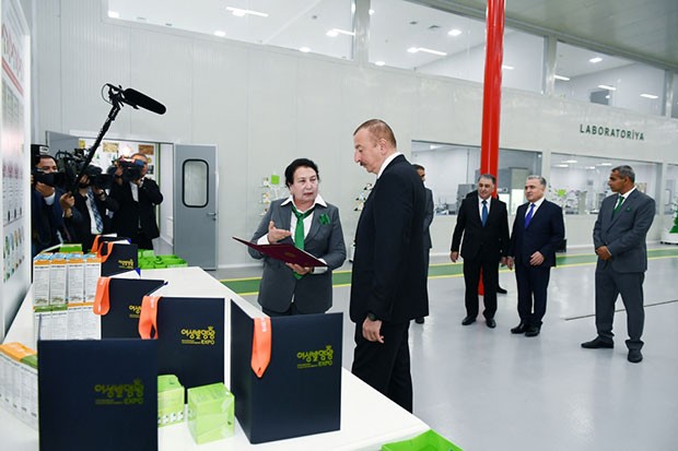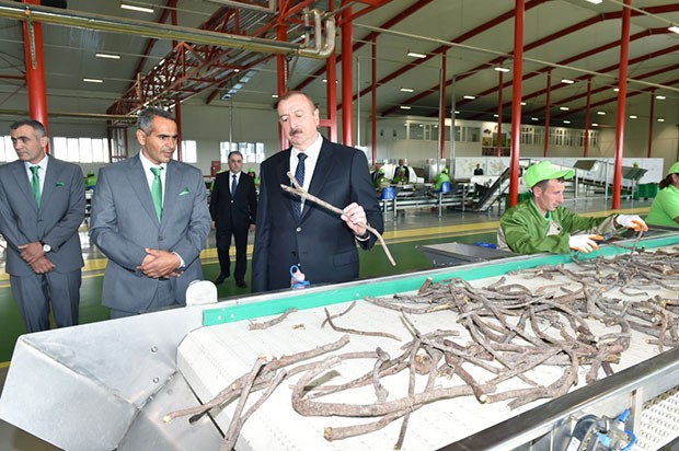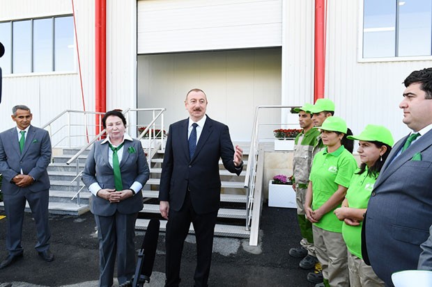 Dövlətimizin başçısı əvvəlcə biyan tədarükü və emal zavodunu işə salıb.