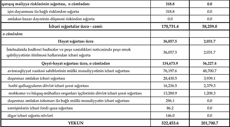 "Marja" Palataya istinadən sığorta sinifləri üzrə hesablanmış sığorta haqları və sığorta ödənişlərini təqdim edir.