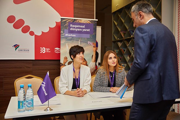 (®) Ölkədə gənclərin məşğulluğunun artırılması istiqamətində keçirilən tədbirlərdə daima fəal iştirak edən “Azercell Telekom” MMC oktyabr ayının 30-u baş tutan əmək yarmarkasında xüsusi stend ilə təmsil olunub. Bakı Şəhər Halqası Əməliyyat Şirkəti (BŞH) və Azərbaycandakı Amerika Ticarət Palatası (AMCHAM) tərəfindən birgə reallaşdırılan bu tədbirdə Azercell-in İnsan Kapitalının İdarə Edilməsi departamentinin mütəxəssisləri yarmarkanın iştirakçıları ilə görüşüb, onların suallarını cavablayıb. Gənclərə şirkətdə mövcud olan vakansiyalar, hər il ənənəvi olaraq tələbələr üçün təşkil edilən təcrübə və təqaüd proqramları haqqında geniş məlumat verilib.